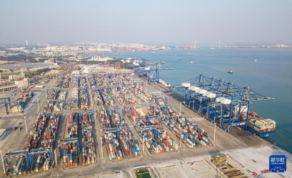 1月11日在海南洋浦经济开发区拍摄的洋浦国际集装箱码头(无人机照片)。